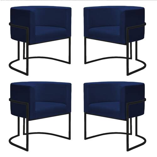 Kit 4 Poltronas Reforçadas Decorativa Sala Nayara Base Ferro Preto Suede - Azul Marinho