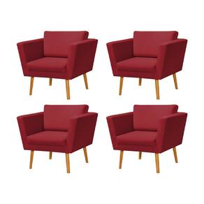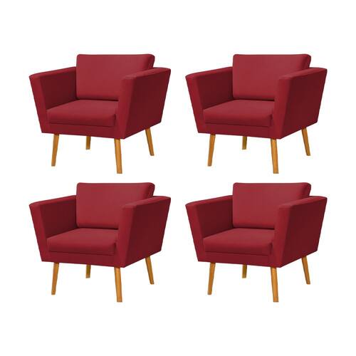 Kit 4 Poltronas Retrô Pés Palito em Madeira Paraty Veludo Vermelho