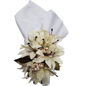 Kit 4 Porta Guardanapo Lírios Da Charlô Branco Este Porta Guardanapo Lírios da Charlô na cor branco é feito de tecido nos tons degradê com a medida aprox. 10cm de comprimento, 7 de largura e 12cm de altura, o anel em madeira na cor amendôa com 4,5cm de diâmetro e 1cm de espessura. Um verdadeiro charme à sua mesa. Quer surpreender seus convidados está aí uma dica que irá alegrar sua mesa. Basta ele e tudo ficará elegante e bonito. Embalagem 4 unidades Ficha técnica - Forma: Circular - Cor: Branco - É produto personalizado: Não - Fonte do produto: tecido - Cor principal: Branco - Comprimento: 10cmx7cmx12cm - Material: Madeira Obs: Não acompanha o guardanapo. Marca: Não Informado