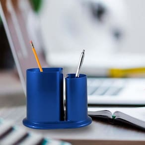 Porta Lápis Duo feito em Plástico Premium PP resistente, cores com pigmento de efeito metalizado, com duas cavidades, espaço para cartão de visita, prático, uma excelente opção para organizar lápis, canetas, marcadores e outros acessórios na mesa de trabalho e/ou estudo. Imagens meramente ilustrativas. Marca: Bb Store