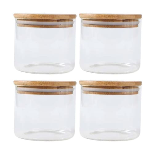Kit 4 Pote Hermético Com Tampa De Bambu 250 Ml Vidro
