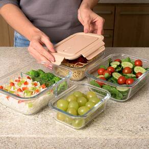 Garantia: 90 dias / Peso: 2,160kg / Cor predominante: capuccino / Ref: 7798138303270; Dimensões do pote pequeno: 15cm (C) x 11cm (L) x 5,5cm (A); Dimensões do pote médio: 17,5cm (C) x 13cm (L) x 6cm (A); Dimensões do pote grande: 20cm (C) x 15cm (L) x 7cm (A); Dimensões do pote com divisória: 20cm (C) x 15cm (L) x 7cm (A); Capacidade do pote pequeno: 410ml; Capacidade do pote médio: 680ml; Capacidade do pote grande: 1,04L; Capacidade do pote com divisória: 1L; Materiais: vidro borossilicato, polipropileno e silicone; Conteúdo: 4 potes herméticos de vidro.