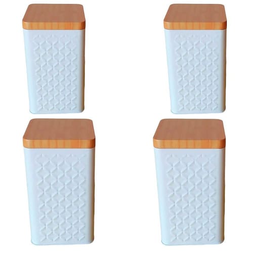 4 Porta-Mantimentos Lata Relevo 3D Quadrada.