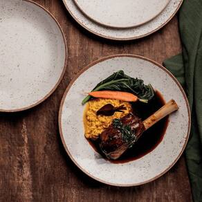 Com acabamento rústico e sofisticado, o prato se destaca pela beleza natural e pelo design atemporal, sendo ideal para refeições do dia a dia ou em composições mais refinadas. Sua superfície lisa facilita a higienização e eles são totalmente compatíveis com micro-ondas e lava-louças, oferecendo praticidade e estilo para o uso diário.