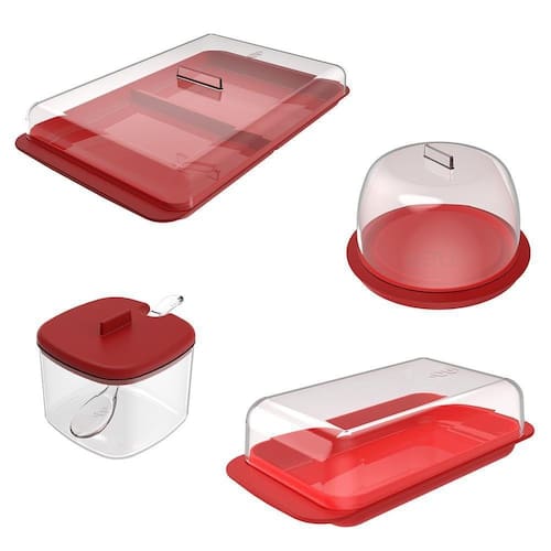 POLIESTIRENO - Material translúcido com baixa Resistência a impactos. Ótima transparência e alto brilho. Não transfere odor, nem gosto aos alimentos. Atóxico, pode entrar em contato com alimentos. Não utilizar em micro-ondas e lava louças. Lavar com sabão neutro, não utilizar material abrasivo ou álcool na limpeza.
