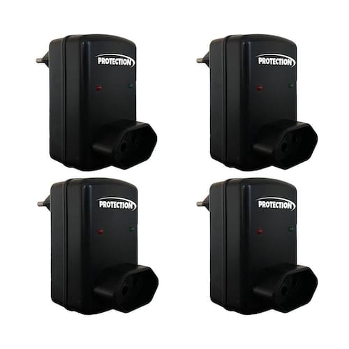 Kit 4 Protetores Elétricos Protection - Contra Surtos, Picos ou Quedas de Energia para Eletrodomésticos Geladeira Freezer Ar-Condicionado Máquina de LavarProteja seus eletrodomésticos contra danos causados por surtos, picos ou quedas de energia adquirindo um Protetor Protection e não corra mais o risco de queimar seus equipamentos.Protege seus equipamentos contra:- Surtos da rede elétrica- Picos de tensão elétrica- Baixa tensão elétrica- Elevação de tensão elétrica- Sobrecarga na rede elétricaNão é eficaz contra descargas elétricas de alta tensão provenientes de raios.Atenção Não é um estabilizador de voltagem, este anúncio é somente 127V.Funcionamento:Os LEDs Verde e Vermelho permanecem acesos quando a rede elétrica e o protetor estão funcionando corretamente e o aparelho está conectado. O LED Verde leva cerca de 8 minutos para acender quando o aparelho é conectado pela primeira vez. Caso a rede elétrica apresente problemas e saia dos padrões normais, o protetor desliga automaticamente o equipamento e o LED Verde se apaga. Após a estabilização da rede elétrica, o protetor aguarda cerca de 8 minutos e então o LED Verde é aceso, religando o equipamento.Informações técnicas- Tensão: 127V- Potência máxima: 1.200 Watts- Tomada 20 A e Pino 10 A Deve ser respeitada a potência máxima Dimensões- Altura: 7cm- Largura: 4,5cm- Profundidade: 3cm- Peso: 100gItens inclusos- 4 Protetores ElétricosGarantia de 12 meses