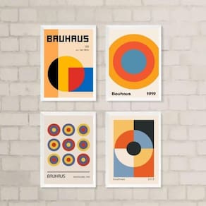Kit 4 quadros arte bauhaus círculos 33x24cm