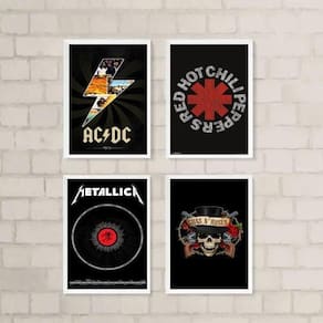 Kit 4 quadros bandas de rock 45x34cm Moldura: madeira preta Informações do produto tire todas as suas dúvidas no descritivo abaixo: decoração para quarto, sala, cozinha, escritório, área gourmet e muito mais. Chega de paredes vazias. Medidas - cada peça tem 45x34cm a3 . Material do papel - papel fotográfico brilhante de altíssima resolução acabamento - todos os quadros são acompanhados de uma película de acetato para proteção da imagem. - os quadros são embalados de forma segura com plástico bolha com camada dupla de acordo com o tamanho dos quadros. Garantia - garantia de 3 meses. Meu quadro chegou. Como posso fixá-lo Você precisa apenas de um martelo e um prego, pois os quadros já vão acompanhados de penduradores. Esta é a forma mais indicada. Caso prefira, você pode utilizar uma fita dupla face neste caso, sugerimos de alta qualidade para evitar que descole e seu quadro caia . Como posso limpar meu quadro A limpeza é feita como um móvel comum da sua casa. Apenas um pano seco ou espanador são suficientes para tal