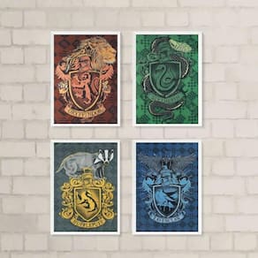 Kit 4 quadros casas de hogwarts 45x34cm - com vidro Cor: moldura branca Informações do produto tire todas as suas dúvidas no descritivo abaixo: decoração para quarto, sala, cozinha, escritório, área gourmet e muito mais. Chega de paredes vazias medidas - cada peça tem 45x34cm a3 . Material do papel - papel fotográfico brilhante de altíssima resolução acabamento - todos os quadros são acompanhados de vidro para proteção da imagem. - moldura em madeira maciça na cor preta ou branca conforme produto escolhido e pendurador . - os quadros são embalados de forma segura com plástico bolha com camada dupla de acordo com o tamanho dos quadros. Garantia - garantia de 3 meses. Meu quadro chegou. Como posso fixá-lo Você precisa apenas de um martelo e um prego, pois os quadros já vão acompanhados de penduradores. Esta é a forma mais indicada. Como posso limpar meu quadro A limpeza é feita como um móvel comum da sua casa. Apenas um pano seco ou espanador são suficientes para tal Ean: 7891234536662