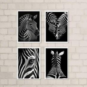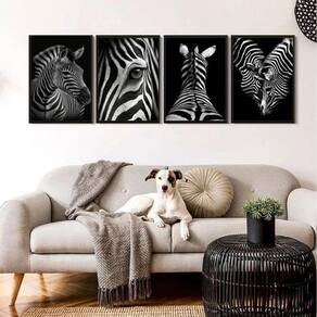 Kit 4 quadros decorativos zebras 45x34cm Moldura: madeira preta Informações do produto tire todas as suas dúvidas no descritivo abaixo: decoração para quarto, sala, cozinha, escritório, área gourmet e muito mais. Chega de paredes vazias. Medidas - cada peça tem 45x34cm a3 . Material do papel - papel fotográfico brilhante de altíssima resolução acabamento - todos os quadros são acompanhados de uma película de acetato para proteção da imagem. - os quadros são embalados de forma segura com plástico bolha com camada dupla de acordo com o tamanho dos quadros. Garantia - garantia de 3 meses. Meu quadro chegou. Como posso fixá-lo Você precisa apenas de um martelo e um prego, pois os quadros já vão acompanhados de penduradores. Esta é a forma mais indicada. Caso prefira, você pode utilizar uma fita dupla face neste caso, sugerimos de alta qualidade para evitar que descole e seu quadro caia . Como posso limpar meu quadro A limpeza é feita como um móvel comum da sua casa. Apenas um pano seco ou espanador são suficientes para tal