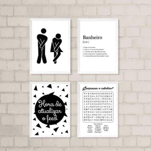 O Kit 4 Quadros Divertidos Para Banheiro 33X24Cm é perfeito para dar um toque de diversão e personalidade ao seu banheiro. Com moldura de madeira branca, esses quadros são ideais para decorar não só o banheiro, mas também o quarto, sala, cozinha, escritório, área gourmet e muito mais.