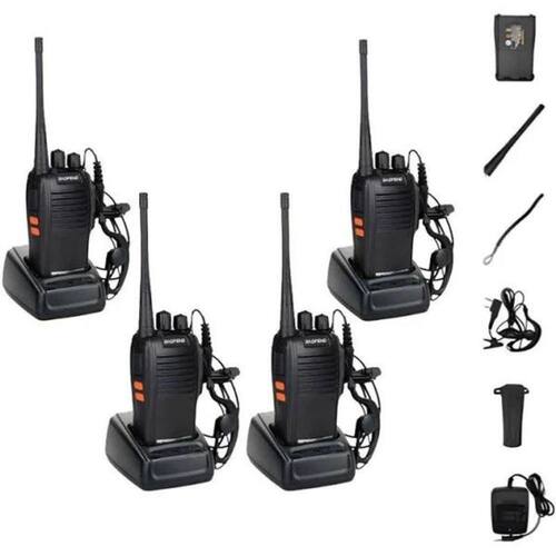 04 Rádios Comunicadores Walkie Talkie Baofeng BF-777S. 04 Baterias. 04 Fontes Carregadoras. 04 Antenas. 04 Alças de Pulso. 04 Clipes de Cinto. 04 Fones de Ouvido.