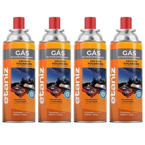 Kit 4 Refil Gás Fogareiro Etaniz 400ml 227g Butano Portátil Camping Churrasco Cozinha Maçaricos