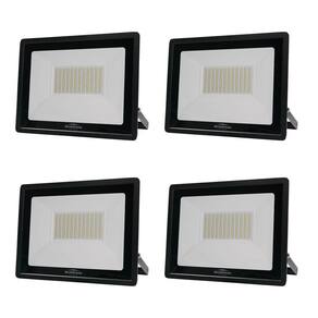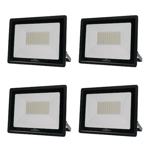 Kit 4 Refletor de Led Slim 100W Prova Dágua Preto Bivolt 6500K Frio