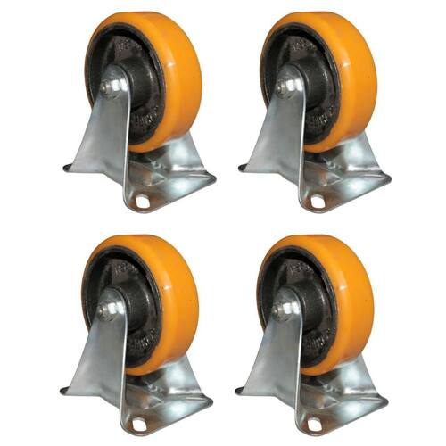 Kit 4 rodinhas 127mm ferro com poliuretano 5'' com placa fixa