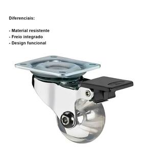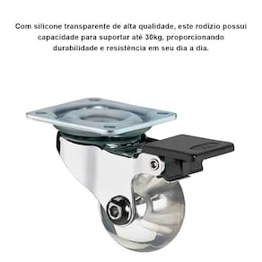 Marca: HafeleModelo: Rodízio Gel Incolor com FreioDiâmetro da Roda: 50mmCapacidade de Peso: 30kg (cada)Material: Poliamida e Aço ZincadoAltura: 64mmLargura: 20mmComprimento: 42mm