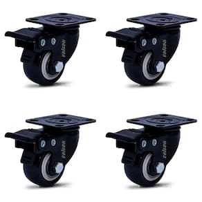 Respostas técnicas: Tipo de rodízio: Giratório com freio Material: Polipropileno de alta resistência Diâmetro da roda: 1,5/8 polegadas Cor: Preto Aplicação: Móveis e acessórios de utilidades para cargas leves Resistente à corrosão e à mobilidade silenciosa