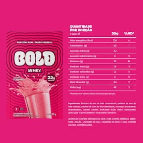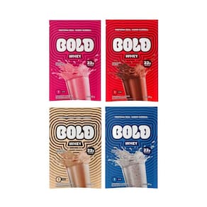 Kit 4 Sache Whey 30g Bold - Cookies e Cream, Mousse de Morango, Chocolate ao leite e Milkshake de baunilha O Whey da Bold é surpreendente do começo ao fim: cremoso, levemente cítrico e com sabor marcante. São 22g de proteína por dose, em uma versão prática e deliciosa para incluir na sua rotina, auxiliando na recuperação dos seus treinos. Destaques do Produto - 22g de proteína por porção 30g - Blend de whey concentrado, isolado e hidrolisado - Sabor intenso - Textura cremosa e refrescante - Perfeito para shakes, vitaminas e receitas fit Sugestão de Consumo Diluir 30g 1 porção em 100ml de água ou leite. Pode ser consumido puro ou como base para sobremesas proteicas. Ingredientes Proteína do soro do leite concentrada, isolada e hidrolisada, morango desidratado, aromatizantes, corante carmim, acidulante ácido cítrico, espessantes goma guar e goma xantana, edulcorante sucralose. Alérgicos: contém derivados de leite. Pode conter amêndoa, amendoim, avelãs, castanha-de-caju, castanha-do-pará e soja. Contém lactose e glúten. Marca: Não Informado Ean: 7908688880231