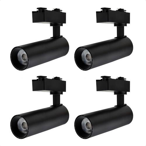 Kit 4 Spot Longo Led MR16 para Trilho Eletrificado Preto 3000K Quente