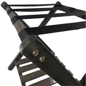 Suporte para malas ideal para hotéis e pousadas #Estrutura reforçada com acabamento diferenciado #Em madeira seca tratada #Com prateleira para acomodar calçados e utensílios, trazendo praticidade e organização #Cintas feitas em nylon reforçado