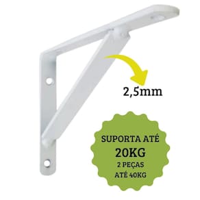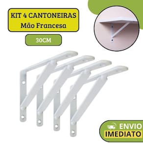 Kit 4 Suporte Mão Francesa Para Sustentar Prateleira 30cm Kit 4 Suporte Mão Francesa Cantoneira Para Sustentar Prateleira 30cm O suporte mão francesa é ideal para instalar prateleiras de madeira que servem para organizar livros, porta-retratos, enfeites e utensílios domésticos. Feitas de ferro, você mesmo pode instalar as cantoneiras. CONTEÚDO DA EMBALAGEM: 4un mão francesa não acompanha parafusos ESPECIFICAÇÕES TÉCNICAS: Tamanho REAL conforme o anúncio Suporta até 20kg por cantoneira 40kg o par , respeitando o espaçamento máximo de 50cm entre as mãos francesas. Cuidado com anúncios que oferecem parafusos menores. A capacidade máxima de sustentação das buchas de expansão de nylon é conseguida utilizando parafusos de maior diâmetro possível e que ultrapassem a ponta da bucha num comprimento igual ao diâmetro do parafuso 10mm . Barra diagonal com solda reforçada; Fabricado em aço carbono, resistente e durável. Pintura eletrostática na cor branca, garantindo alta resistência, melhor acabamento e uniformidade; 3 meses contra defeitos de fabricação. Design tradicional e discreto ideal para qualquer tipo de ambiente. Possui furos para fixação na parede e no objeto que se irá apoiar. Acompanha buchas e parafusos Não O tamanho do suporte é igual ao anunciado Sim Qual a distância ideal entre as mãos francesas Recomenda-se instalar com a distância máxima de 50 cm entre as mãos francesas, para garantir uma melhor sustentabilidade. Qual a distância ideal entre uma prateleira e outra Para acomodar objetos grandes é necessário que haja uma distância de 50 a 60 cm. Posso instalar o produto em Gesso e Drywall Se a parede for de drywall ou gesso, é necessário um reforço estrutural no local, além de buchas especiais. Utilize cargas baixas, de preferência 2 kg por ponto de fixação. Qual tamanho ideal da prateleira No geral, prateleiras com 35 cm de profundidade tendem a comportar todos os tipos de livros inclusive de artes e fotografia, por exemplo . Prateleiras estreitas, de 20 cm, comportam livros de leitura. O ideal é que, caso você tenha muitos livros grandes, meça-os para ter certeza da profundidade da prateleira. Qual a altura ideal para instalar a prateleira Com a ajuda de uma trena, meça a altura que a prateleira deve ficar. A altura indicada é diante dos olhos, ou seja, não tão alto e nem tão baixo. As medidas padrões para instalar prateleiras são entre 1,65mts e 1,75mts a partir do chão. Marca: Não Informado
