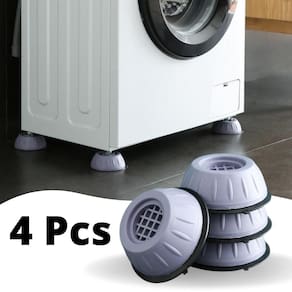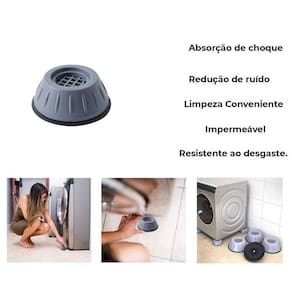 então estes pés niveladores vão aliviar as dores nas suas costas, chega de ficar arrastando eletrodomésticos pesados, que dão trabalho toda vez que você precisa chamar alguém para te ajudar a limpar e esqueça de uma vez por todas aquela água parada que deixa mal cheiro e bolor com o tempo. Compatível com todos os modelos de lavadoras, secadoras e de lava e seca. Modo simples de uso: basta colocar pé embaixo dos pés da máquina que já estará pronto para deixar a lavadora firme e mais alta para conseguir limpar com um rodo, simples e pràtico. Características: - altura: 4 cm - diâmetro: 9 cm - peso suportado nas 4 unidades juntas: 160kg