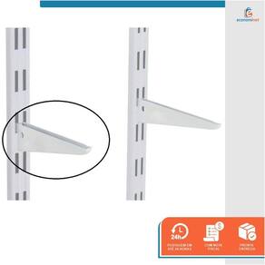 Suporte Trilho Duplo Branco 22cm - STARFERSuporte para prateleiras para trilho duplo branco em aço pintado.Medidas do suporte: 240mm (base prateleira) x 72mm (base parede). Indicado para fixar prateleiras com largura até 220mm.Embalagem: 4 peçasRef.: 13040710Marca: Starfer