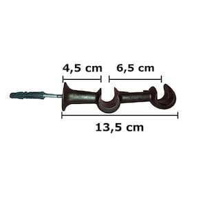 Características: Cor: Imbuia Composição: Polipropileno Para varões de: 19mm Peso: 80g Distância total da parede: 13,5 cm Distância entre o primeira varão e a parede: 4,5 cm Distância entre os varões: 8,5 cm Varão Não Incluso Validade indeterminada