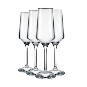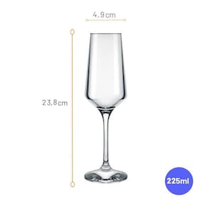 As taças Brunello Nadir, em vidro cristalino, no modelo flute, que favorece a formação de bolhas e direciona o aroma da bebida para o nariz, sendo ideal para espumantes.