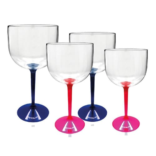 Kit 4 Taças Gin Bicolor Azul E Rosa Acrílico Ps A Taça Gin de Poliestireno Liso com Base colorida da KrystalON é perfeita para bebidas mais refinadas é resistente e durável, seja na sua festa, evento ou bar a Taça Gin da KrystalON sempre mantem seu estilo. Especificações: Material: Poliestireno Acrílico PS , Altura: 20 cm, Diâmetro: 10 cm, Capacidade: 550 ml, Cor: 2 Copos Transparente com base Azul e 2 Copos Transparentes com Base Rosa, Quantidade: 4 Peças