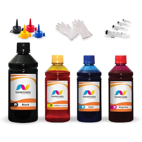 Kit de 4 tintas para impressoras HP Pro, totalizando 1,25 litros. Compatível com diversos modelos, incluindo Pro 8210 e 904XL.Impressão colorida