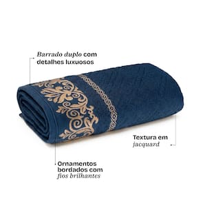 A tecnologia SoftTouch proporciona toque extra macio, com sensacao de toalha de hotel. O corpo da toalha apresenta textura em baixo relevo feita em jacquard, com barrado duplo e ornamentos bordados com linhas brilhantes que valorizam o design do modelo.