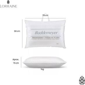 Travesseiros Toque de Pluma. A coleção de travesseiros Toque de Pluma da Buddemeyer garante conforto e aconchego para o seu momento de descanso. Produto não alérgico, extra macio e de alta durabilidade com detalhe requintado. Produzidos em 100% algodão cetim 233 fios com acabamento especial, tem seu enchimento em 100% poliéster microfibra extra macia. Os travesseiros podem ir à máquina sempre que for necessário, oferecendo a higienização perfeita. A Buddemeyer é referência em qualidade e estilo.
