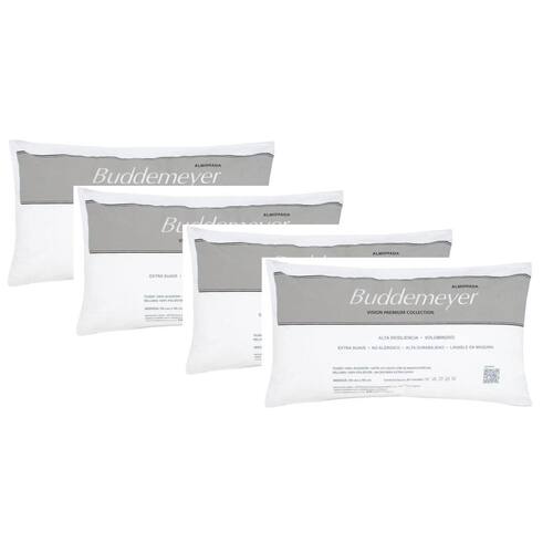 Kit 4 Travesseiros Vision Fill 50x90 Buddemeyer Kit 4 Travesseiros Vision Fill 50x90 Buddemeyer Tem como principais características ser super volumoso e sua alta resiliência - VISION FILL da Buddemeyer é um travesseiro que garante conforto e aconchego para o seu momento de descanso. Extra macio e de alta durabilidade tem acabamento requintado. Produto não alérgico. Produzidos em 100% algodão cetim 233 fios com acabamento especial, tem seu enchimento em 100% poliéster microfibra extra macia. Podem ir à máquina sempre que for necessário, oferecendo a higienização perfeita. A Buddemeyer é referência em qualidade e estilo. contém: 4 TravesseirosTamanho: 50cm x 90cmAltura: 19 cmComposição: Tecido da frente em 100% algodão cetim 233 fios; enchimento em 100% poliésterCor: BrancoMarca: Buddemeyer Marca: Não Informado Ean: 7796241282055
