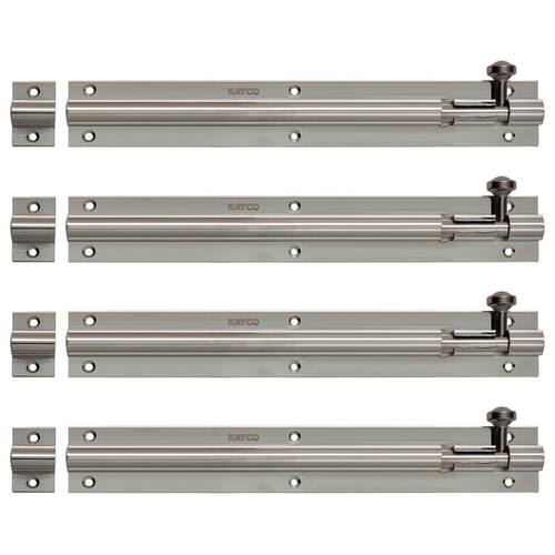Kit com 4 Trincos 200mm Tarjeta Ferrolho para Porta Fio Redondo 8Pol. Em Alumínio Cromado Rayco