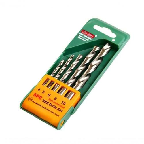 JOGO DE BROCAS AÇO RÁPIDO C/ 5 PEÇAS BCF.505UYUSTOOLS - 4mm / 5mm / 6mm / 8mm e 10mm.DESCRIÇÃO DO PRODUTO- KIT com 5 brocas de Aço Rápido UYUSTOOLS- Fabricado em AÇO RÁPIDO, super rígido de extrema qualidade, essas brocas possuem tratamento térmico especial que aumenta sua vida útil e durabilidade.- Ideal para furar metais, plásticos e madeira.INFORMAÇÕES TÉCNICASComposição do KIT- 01 Pc - Broca Aço Rápido 4mm.- 01 Pc - Broca Aço Rápido 5mm.- 01 Pc - Broca Aço Rápido 6mm.- 01 Pc - Broca Aço Rápido 8mm.- 01 Pc - Broca Aço Rápido 10mm.