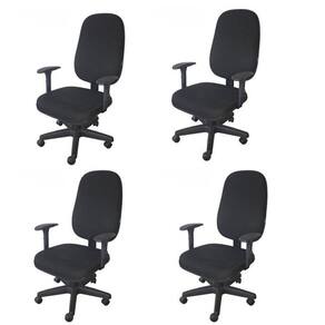 Cadeira modelo Presidente ideal para o seu escritório ou home office. Possui uma estrutura resistente e ergonômica. Rodízios em PP (Polipropileno), capa na estrela, pistão à gás, espuma injetada, braços reguláveis e seu acabamento é em tecido J. Serrano na cor preta. Altura do Conjunto: 117 cm Ambiente: null Ambiente Principal: Escritório Cor: Preto Informação Complementar: 4x Cadeira Giratória Carenada Braço Regulável Presidente Tecido J. Serrano Preto Largura: 58 cm Altura: 117 cm Peso: 11,5 kg Profundidade: 62 cm Necessita Montagem: Sim