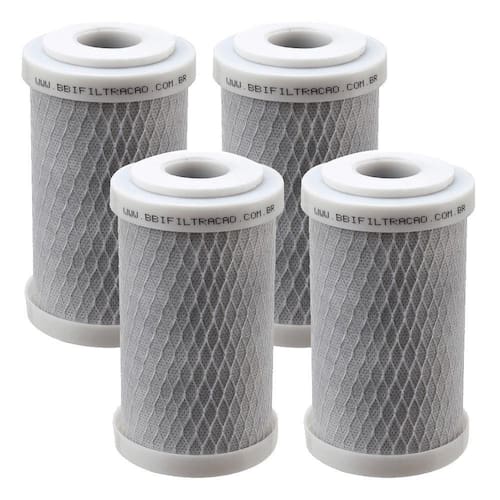 Kit refil filtro carbon block 5 x 2,5 - 125 com 4 unidadesO kit acompanha 4 refis filtro carbon block 5 x 2,5 - 125 que contam com o sistema de vedação por encaixe. São produzidos com carvão ativado tipo carbon block e tem capacidade de reter partículas e reduzir o cloro presentes na água, inibindo o desenvolvimento de microrganismos e proliferação de bactérias, garantindo uma água de excelente qualidade para você.A bbi tem uma linha completa com todos os tamanhos de refis e elementos filtrantes para diversas aplicações. O refil filtro carbon block 5 x 2,5 - 125 de encaixe é totalmente compatível com diversos modelos de filtros e purificadores do mercado que utilizem o elemento filtrante do tipo carbon block ou carvão ativado de encaixe, como bbi f125, acqua 125, hidrofiltros pou 5, serve nas carcaças fit 5 planeta água, entre outros. O refil filtro carbon block 5 x 2,5 - 125 elimina partículas de barro, ferrugem, areia e outros sedimentos, reduz cor e turbidez, garantindo uma água pura e sem odores ou gostos indesejados, seja para beber ou para a preparação de alimentos e bebidas, com uma capacidade de filtragem de 5 micra e 100 litros hora. Fácil de dar manutenção, você mesmo troca o seu refil Vantagens e benefícios- ótima eficiência na remoção de cloro livre;- evita a proliferação de bactérias;- auxilia na retenção de sólidos e sedimentos suspensos na água, além de reduzir cor e turbidez;- preparação de alimentos e bebidas sem cloro, gostos e odores desagradáveis;- reposição de filtros e purificadores instalados em ponto de uso- compatível com diversos filtros e purificadores com carcaça de encaixe e altura de 7 polegadas; Características técnicasEncaixe/vedaçãoAltura: 5 polegadasØ externo: 2,5 polegadasDimensões do produto (comp x larg x alt): 71,0 x 71,0 x 127 mm Composição:Elemento filtrante: carvão ativado compacto - origem vegetalAcabamentos: tampas, tnt e tela em polipropileno (pp) / arruelas de vedação em elastômero atóxicoTemperatura de operação: máx. 70 °c / mín. 1 °cPressão de operação: máx. 40 mca (4,0 bar) / mín. 2 mca (0,2 bar)Classe retenção partículas (micra): 5Eficiência redução cloro livre: aplicávelVazão máxima recomendada: 100 litros/horaConteúdo da embalagem: 4 kit refil filtro carbon block 5 x 2,5 - 125