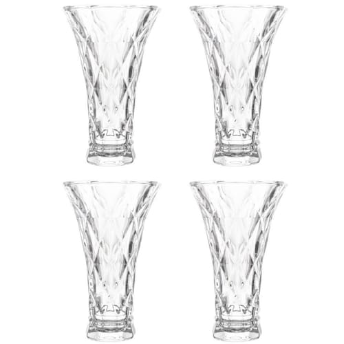 Kit 4 Vasos de Vidro Decorativo Lyor Diamond Transparente 13x20cm para Plantas Arranjos Flores