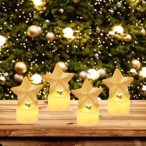 -04 unidades Estrela Aramada Dourada Vela Eletrônica Led 7cm
