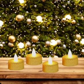 Kit 4 Velas Eletrônicas Glitter Dourado Natal Led 4cm