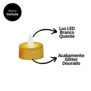 -04 unidades Vela eletrônica Glitter Dourado 4cm