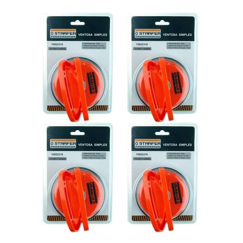 O kit 4 ventosas simples capacidade 25 kg starfer é perfeito para elevar e transportar peças planas com superfície lisa, como vidros, espelhos, cerâmicas e muito mais. Composto por 4 ventosas, esse kit facilita o transporte de peças planas e lisas de forma segura e eficiente. As ventosas são do tipo simples e possuem suporte e alça feitos de plástico abs de alta qualidade, garantindo resistência e durabilidade. A ventosa em si é feita de borracha, proporcionando aderência e estabilidade durante o transporte. Cada ventosa tem capacidade de carga de até 25 kg, permitindo levantar e transportar peças mais pesadas com facilidade. O diâmetro de cada ventosa é de 115,0 mm, proporcionando uma área de contato ampla e segura. Com o kit 4 ventosas simples capacidade 25 kg starfer, você terá uma solução prática e eficiente para o transporte de peças planas e lisas. Seja para ou doméstico, esse kit é indispensável para quem precisa movimentar esse tipo de material. Ref. 15022310 marca: starfer