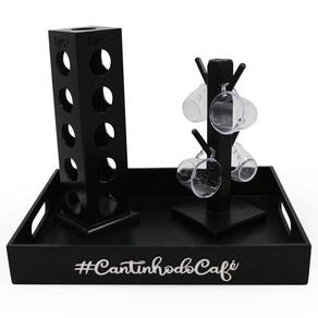 Kit 4 xicaras acrílico cristal porta capsulas para 3 corações bandeja Composição do kit;4 xícaras1 bandeja1 suporte de xícaras1 porta capsulas para 3 corações Xícara 85ml acrílica transparente As xícaras são muito bonitas e esse acrílico cristal traz um charme a mais ao produto, deixando-o ele mais decorativo para a hora do café. Você pode usar em casa ou no escritório, ter sempre à mão sua xícara para tomar aquele cafezinho, capuccino e até um chocolate quente se estiver com vontade. Capacidade 85mlMaterial - acrílicoAltura - 5,5 cmLargura - 8,5 cm Bandeja cantinho do café versátil e multiuso Feita em mdf de 6mm com pintura em tinta acrílica na cor preta ela é ideal para organizar o seu lar, servir um cafezinho para os amigos, organizar papeis de escritório entre diversas outras utilidades. Bandeja versátil de qualidade, combinando com todos os ambientes no qual estiver Suas medias são40x30x6 externa 38,5 x 28,5 x 5,5 na parte interna Possui as laterais vazadas como uma alça. Suporte porta xícara caneca 4 pinos xicaras Esse é o produto ideal para decorar o seu tão especial cantinho do café ou até mesmo presentear uma pessoa querida, além da beleza o porta xicaras é feito em mdf que é muito resistente, ideal para xicaras/canecas de 240ml. Com esse porta xicaras você vai conseguir deixar seus armários muito mais organizados. Medidas suporte:Altura: 24 cmBase: 11x11Peso: 282gMaterial de composição: mdf/pinus Porta cápsula para cápsulas 3 corações Esse porta cápsulas tem ar moderno feito em madeira mdf pintada de preto, dando um ar de elegância para qualquer canto de sua casa. Organize seu cantinho do café com as cápsulas sempre a mão e ainda decore o seu ambiente com certeza vai ser uma peça que vai chamar a atenção e tirar elogios Feito em mdf com pintura preta tinta acrílica Comporta 20 capsulas 3 coraçõesMedidas 32x11x11 Cápsulas não inclusas Perguntas frequentes: - entregam para todo país Quem somos