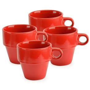 Kit 4 Xícaras Vermelhas de Cerâmica 210ml Empilháveis