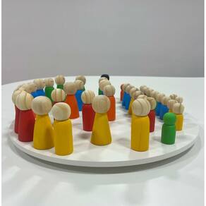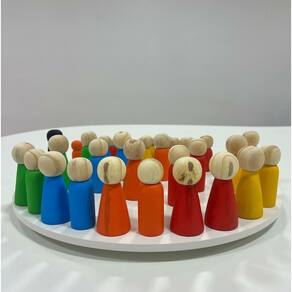 Kit 40 Bonecos - Madeira - Bonecos para Constelação Familiar Kit Família Sistêmica em Madeira, desenvolvidos e adequado para a construção de constelações familiares em terapia individual, assim como para treinamento e aconselhamento, ou para consultoria de equipes e departamentos de uma organização. São 40 bonecos, sendo 02 casais de avós + 06 casais de adultos + 03 casais de adolescentes + 4 casais de crianças + 02 bebês + 1 recém-nascido + 1 totem + 01 representante de dinheiro + 01 representante de dúvida + 1 caixa para bonecos. Tamanho aproximado: 9 cm adultos, 07 cm adolescentes, 06 cm crianças, 05 cm animais. Os bonecos são produzidos com madeira Pinus, portanto podem conter detalhes que são característicos da madeira. O campo mórfico não acompanha os bonecos. Fotos meramente ilustrativas. Ean: 00000000000000