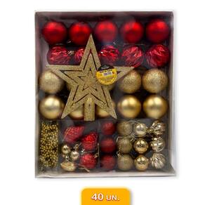 Kit 40 Enfeites Arvore Natal Premium com Acessórios Completo Kit de Enfeites de Natal com Bolinhas - Decoração Festiva e Sofisticada Se você ama enfeitar a árvore e toda a casa durante o Natal, este kit com bolinhas será a escolha perfeita Com um design clássico, o kit contém 40 unidades de diferentes itens, com formas, texturas, tamanhos e tonalidades variadas. São corações, pinhas, bolas com glitter e muito mais, permitindo diversas combinações para enfeitar sua casa de maneira festiva e sofisticada. -versatilidade de Decoração: As bolinhas podem ser usadas em diversas decorações natalinas, como guirlandas, arranjos, centros de mesa e, é claro, na árvore de Natal. Cada uma delas contém uma cordinha em seu topo para que você possa amarrá-las e pendurá-las facilmente, tornando a decoração ainda mais prática. -durabilidade e Reutilização: Feitas com materiais de alta qualidade, as bolinhas são resistentes e duráveis, podendo ser reutilizadas em várias celebrações natalinas. Seu tamanho compacto as torna ideais para árvores de Natal de todos os tamanhos. Conteúdo do Kit: -01 Cordão de Pérolas Dourado-01 Estrela Dourada-05 Bolas de 6cm com Glitter-05 Bolas de 6cm Globo Cristalizado-05 Bolas de 6cm Fosca Vermelha-05 Bolas de 6cm Fosca Dourada-03 Bolas de 4cm com Glitter Vermelha-03 Bolas de 4cm com Glitter Dourada-03 Bolas de 4cm Metalizada-03 Bolas de 4cm Espiral-02 Corações Dourados-02 Pinhas Vermelhas Especificações: -material: Polipropileno-dimensões:-estrela: Largura: 20cm x Altura: 20cm-bolas Maiores: Diâmetro: 6cm x Volta completa: 19,5cm-bolas Menores: Diâmetro: 4cm x Volta Completa: 12,5cm-pinhas: Altura: 6,2cm x Largura: 4,5cm-coração: Largura: 4,5cm x Altura: 5,5cm-cordão de Pérola: 4,04 metros-peso: Aproximadamente 400g O kit de enfeites de Natal com bolinhas é uma opção elegante para a decoração festiva de sua casa. Composto por 40 unidades de diversos itens, as bolinhas são feitas com materiais duráveis e reutilizáveis. A variedade de formas, texturas e cores permite diversas combinações, tornando a decoração mais versátil e sofisticada. Complemente o clima natalino com este kit encantador e torne seu lar ainda mais especial nesta época tão especial do ano.