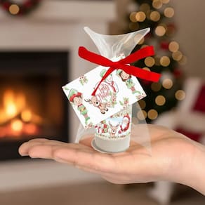 O kit é enviado desmontado para facilitar o transporte e a montagem em casa.As garrafinhas já vêm cheias, e os rótulos, tags, saquinhos e fitas são enviados separadamente.Escolha a arte. Após o pedido, não será possível alterar a opção selecionada.Personalização: O anúncio em questão possui arte fixa, para personalização.Por que escolher este kit de lembrancinhas de Natal?