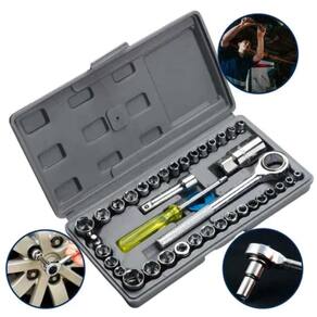 Especificações Material: aço cromo vanádio de alta resistência Tipo de ferramenta: soquetes e acessórios Número de peças: 40 Aplicação: reparos automotivos, domésticos e mecânicos Estojo com compartimentos para fácil organização