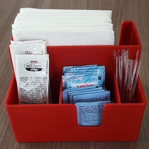 Os portas sachês e guardanapos proporcionam mais praticidade às suas refeições, além de deixar suas mesas ou bancadas organizadas. Com estes suportes você facilita seu dia a dia da melhor maneira, pois eles possuem dois espaços para você organizar os sachês, um espaço para organizar palitos ou colherinhas e um espaço para acomodar os guardanapos, proporcionando melhor acomodação de seus itens. Os molhos são parte fundamental na hora da degustação do alimento e os guardanapos são indispensáveis, por isso este organizador também é ideal para mesas de restaurantes, bistros, bares, cafés, lanchonetes e uma ótima escolha para quem tem seu próprio negócio. Os organizadores possuem design casual e compacto, por isso, se adapta facilmente à decoração já existente no ambiente.